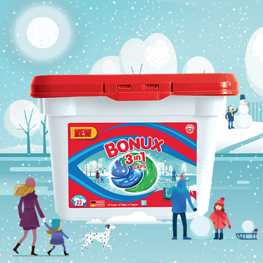 Отстранява бързо и ефикасно замърсяванията от бялото пране, изпълвайки го със свежестта на зимните дни. Капсулите Bonux 3в1 Polar Ice Fresh за бяло пране съдържат точното количество препарат, нужно за лесното и бързо изпиране. Новата подобрена формула на капсулите Bonux 3в1 Polar Ice Fresh за бяло пране, разработена в Германия, премахва петна от червено вино, плодов сок, грим и др. много по-добре* от скъп перилен препарат.*метод за тестване в съответствие с протокола на A.I.S.E (Международна асоциация за сапуни, перилни препарати и продукти за поддръжка)